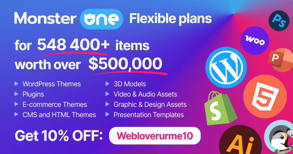 With 540,000+ digital items under one subscription, MonsterONE is the go-to platform for web developers, designers, marketers, and content creators who value speed, variety, and quality.